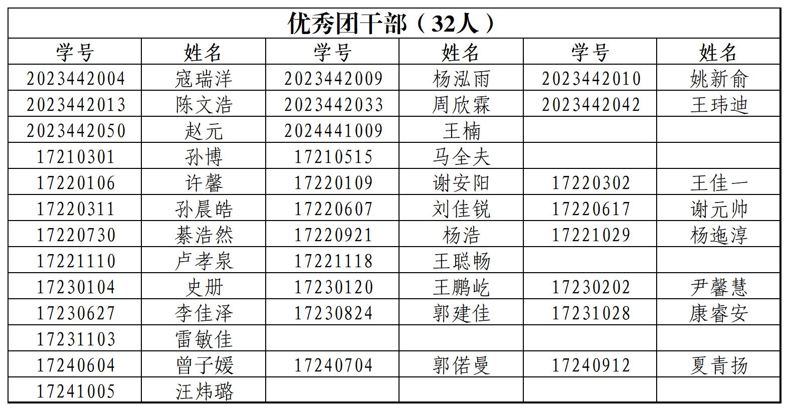 根据《吉林大学共青团改革实施方案》《吉林大学关于加强和改进新形势下共青团思想政治工作的实施方案》要求,经过学院评选工作小组讨论审定,拟确定草莓视频 2024年度吉林大学“优秀团员、优秀团干部、先进团支部”推荐人选如下: